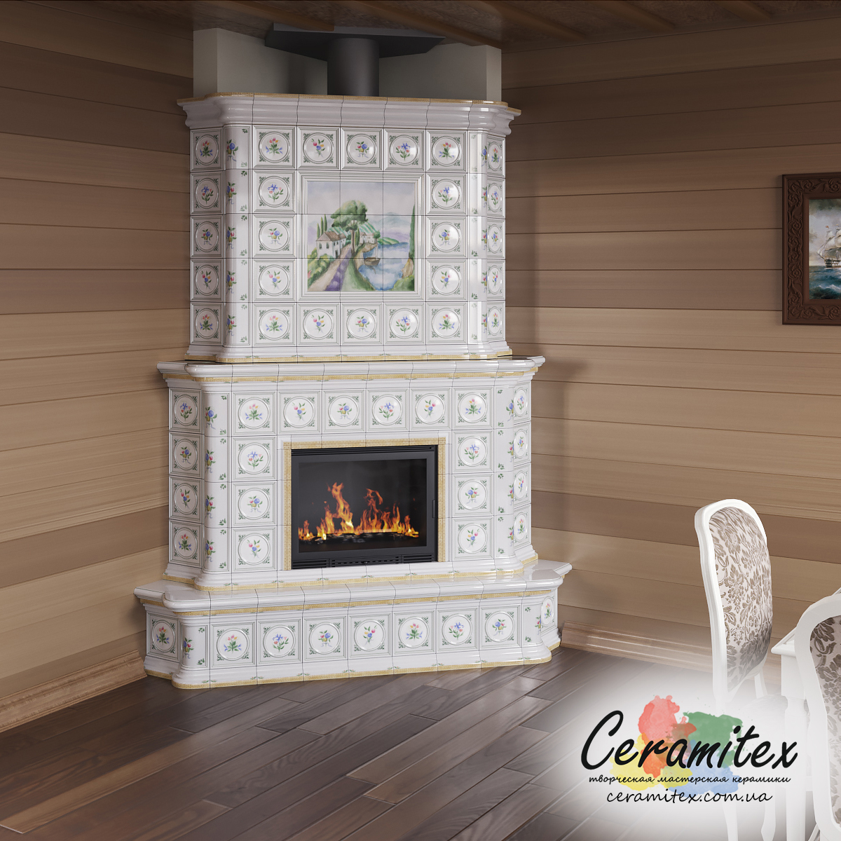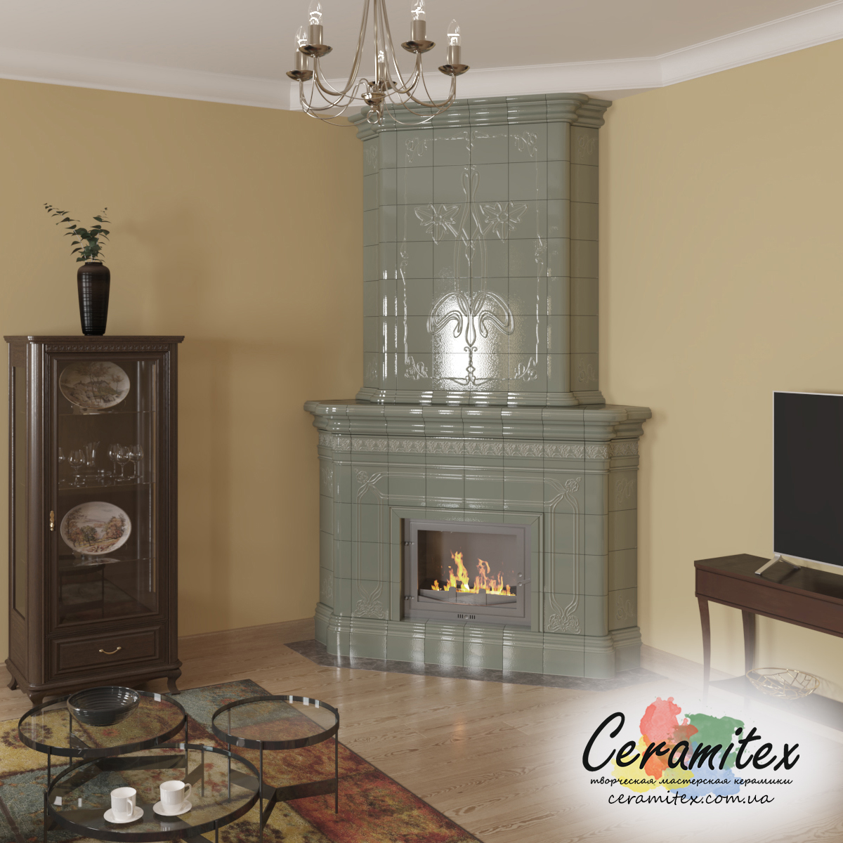 Декоративное исполнение изразцового камина