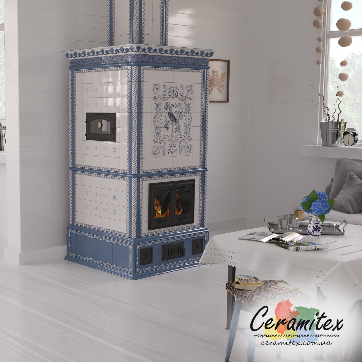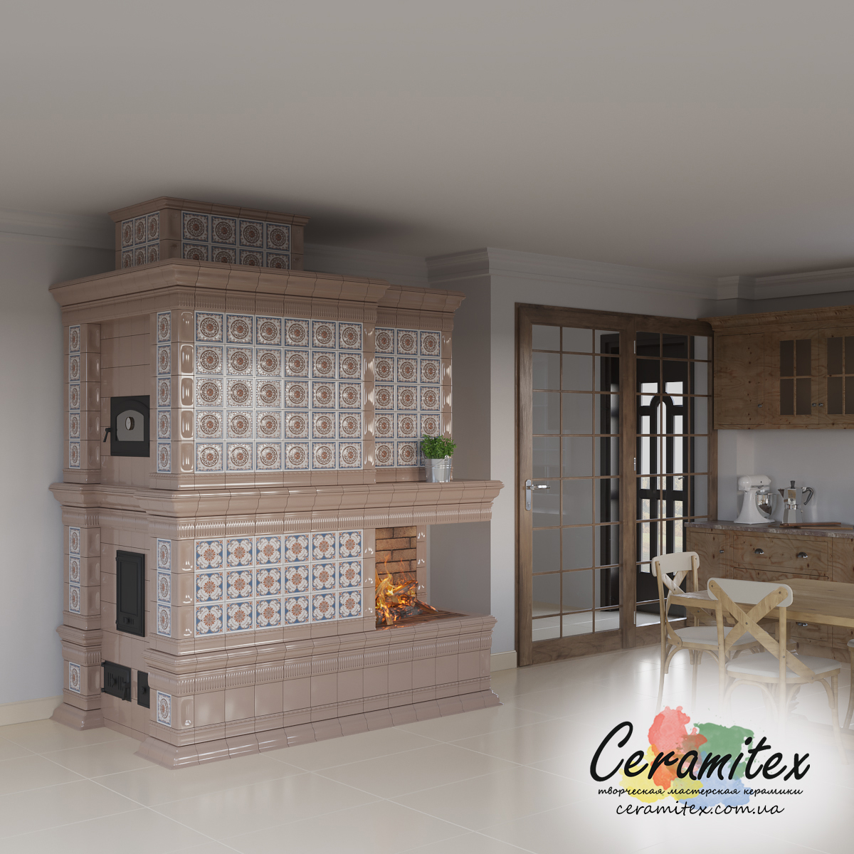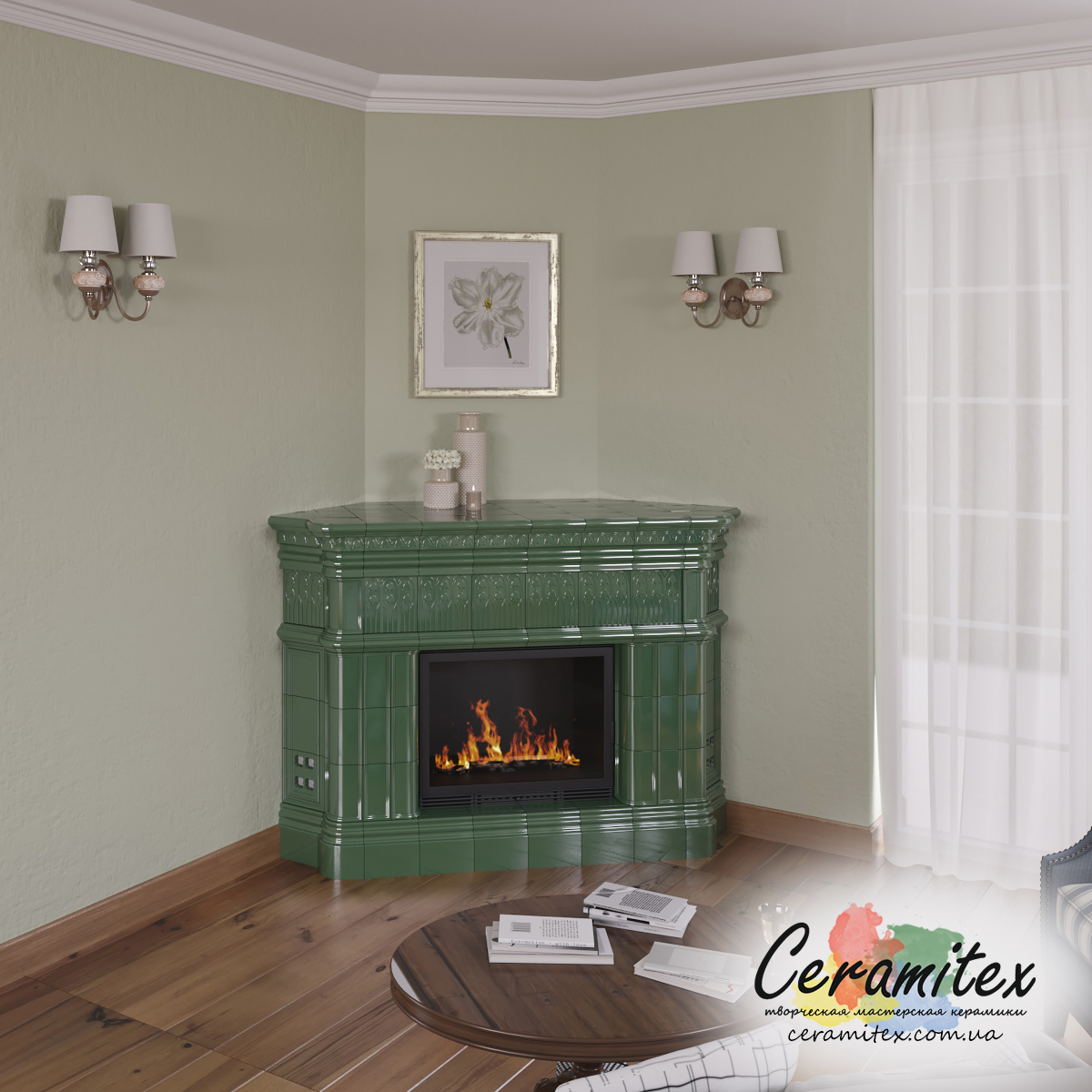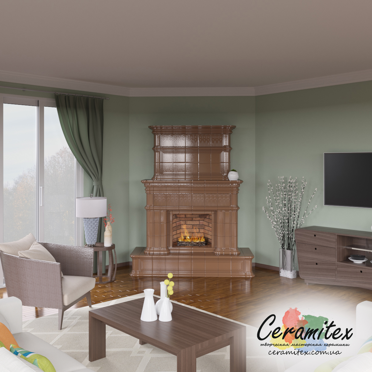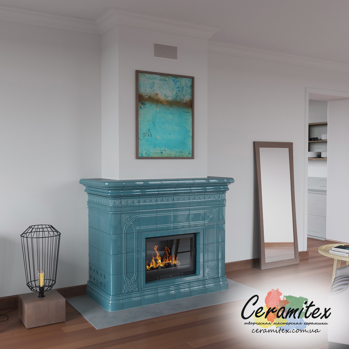Примеры изразцовых каминов в различных интерьерах
