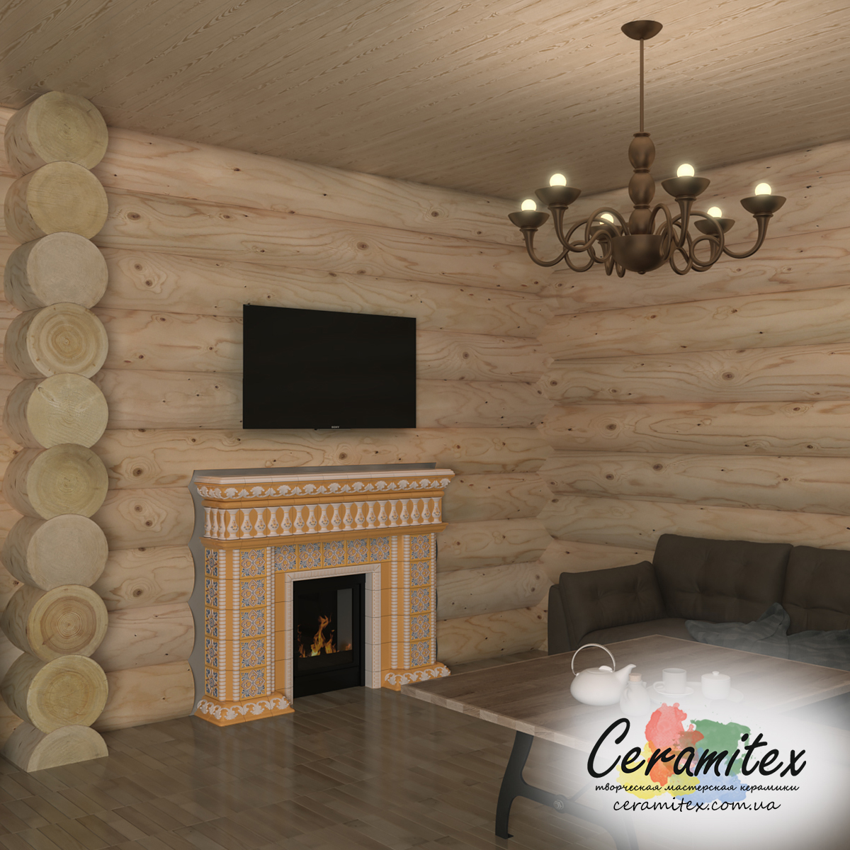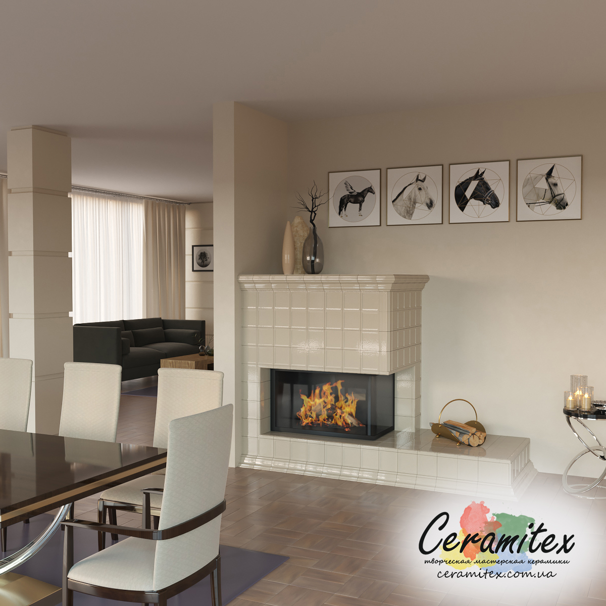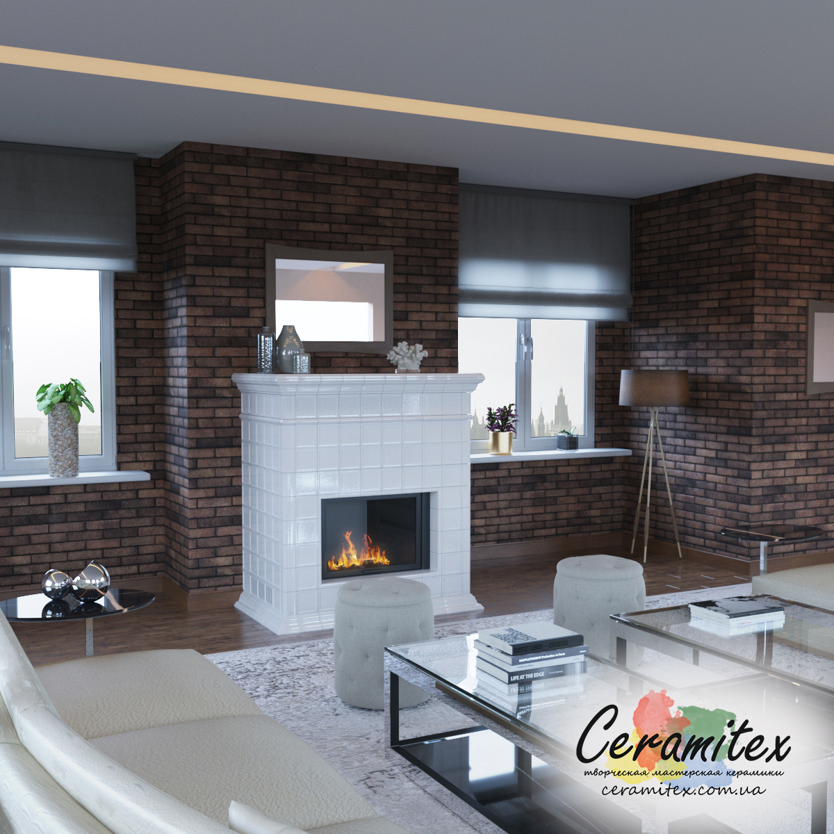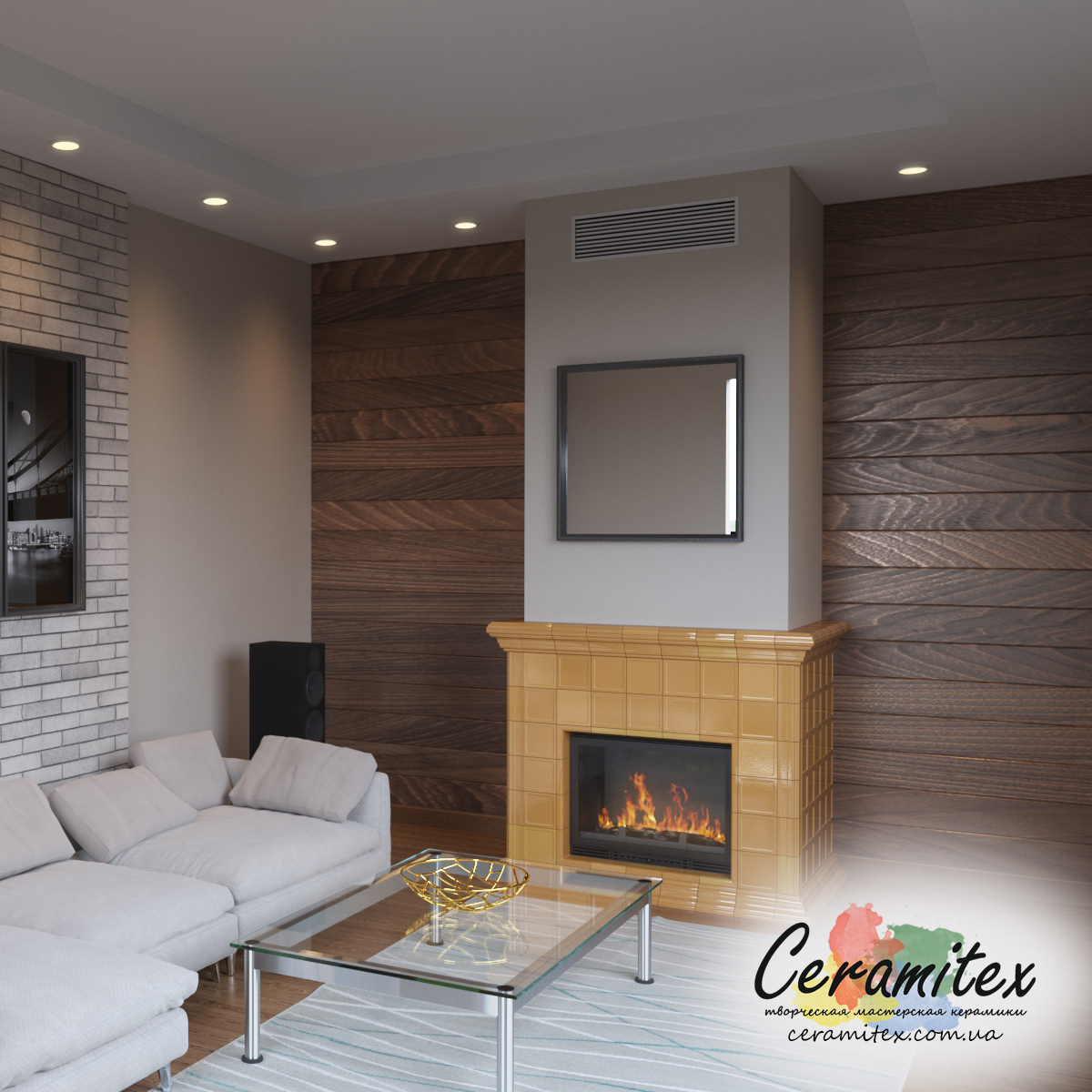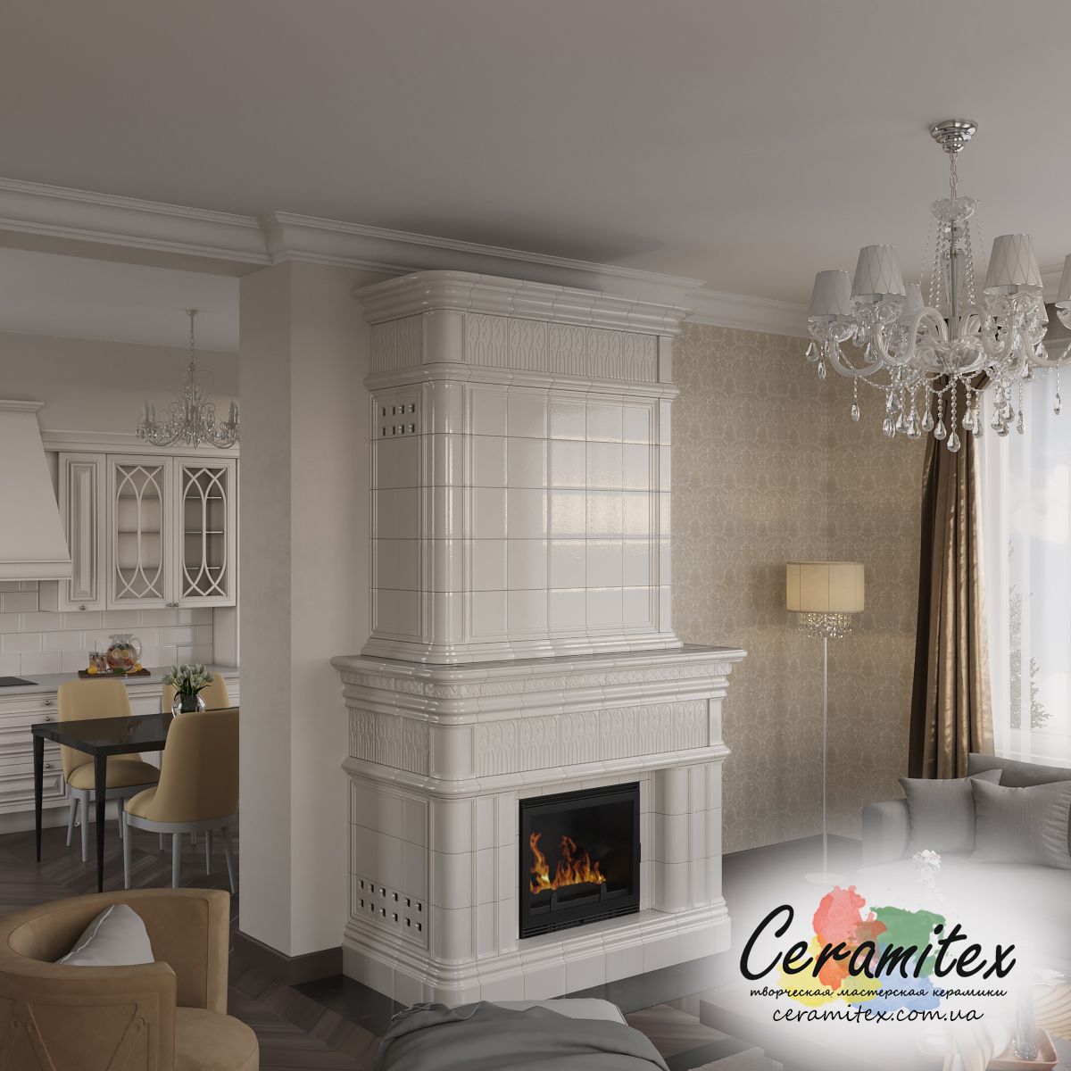 Примеры изразцовых каминов в различных интерьерах